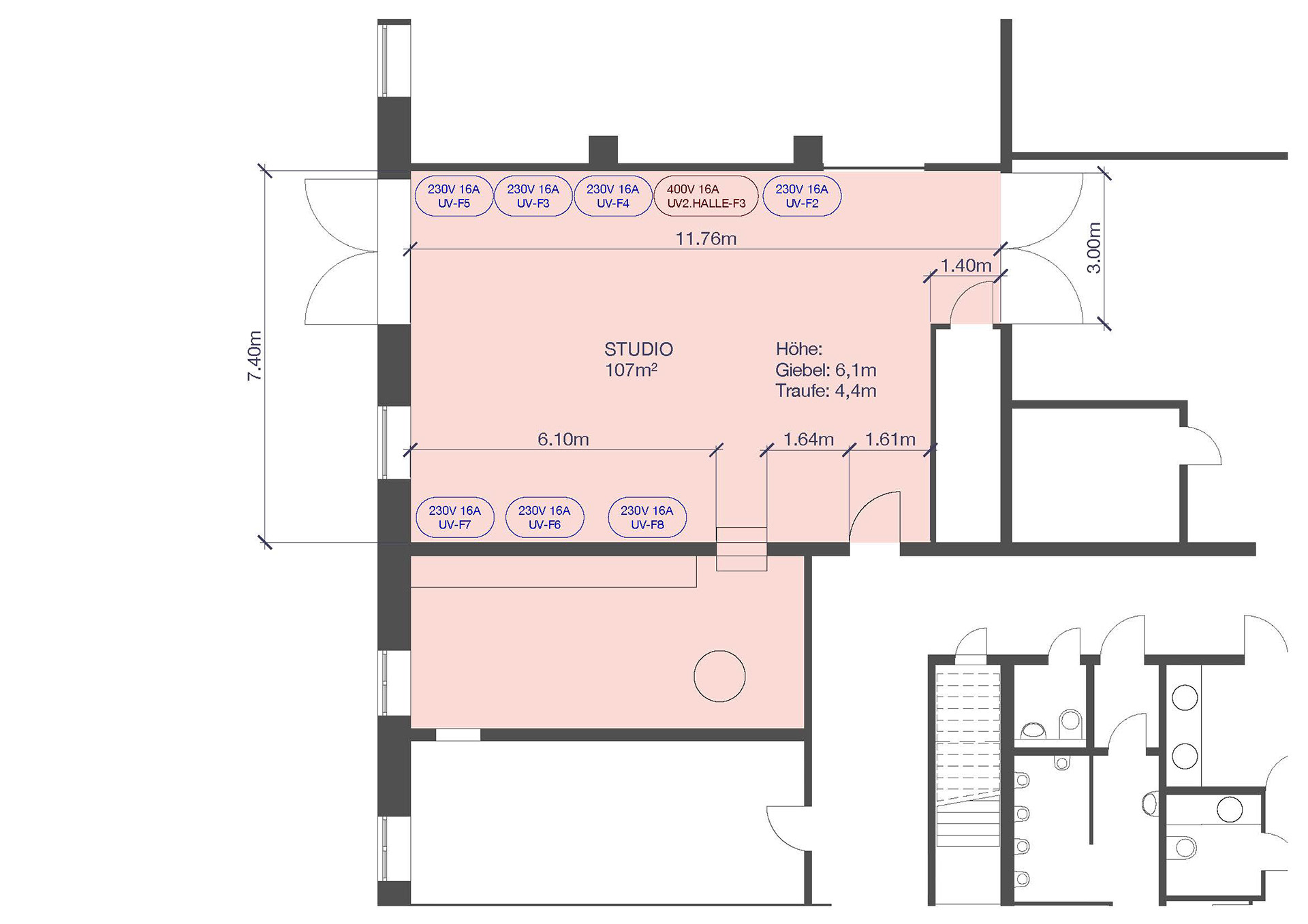 inkl. Strom, Endreinigung, Styros, Hintergrundaufhängung, Kleiderständer, Steamer